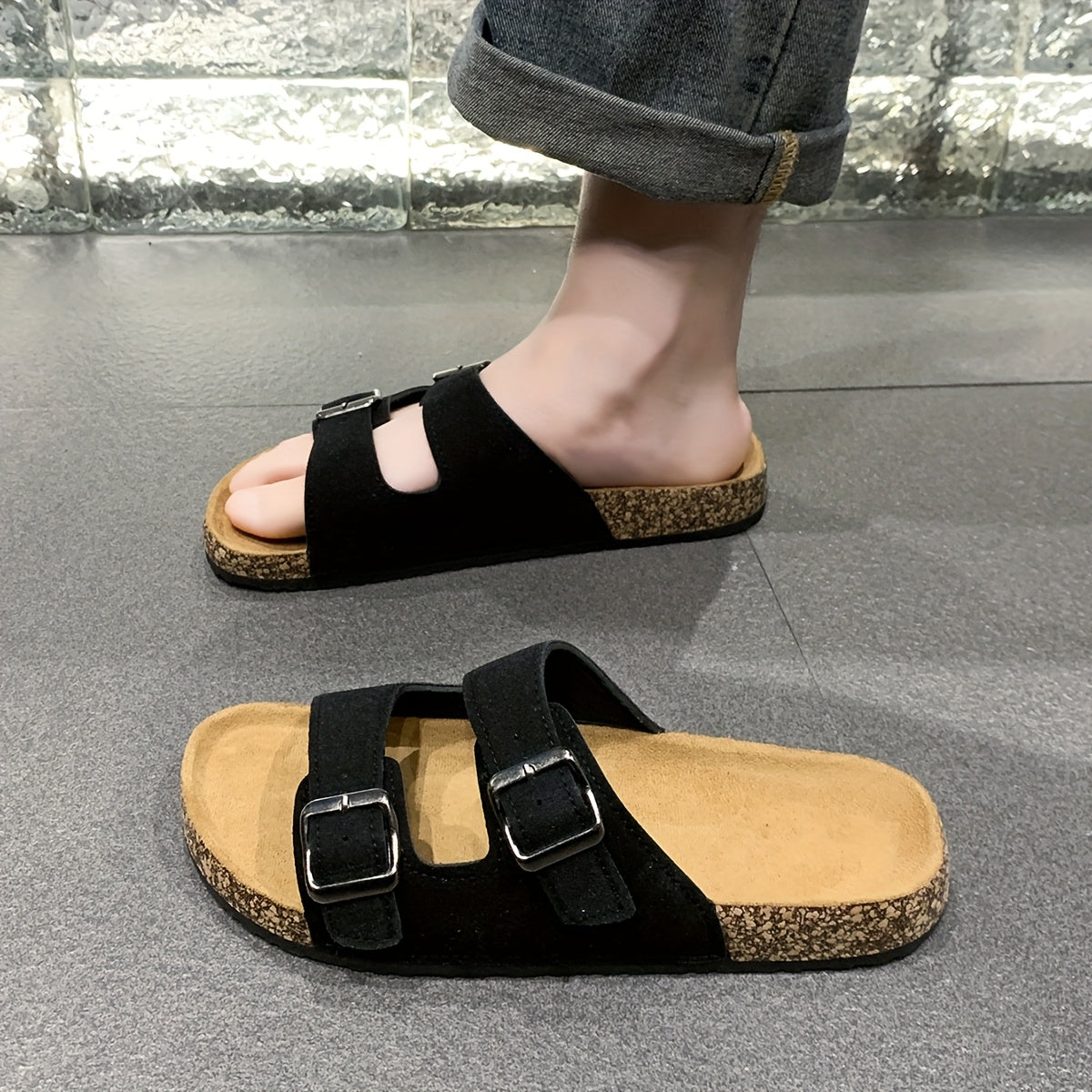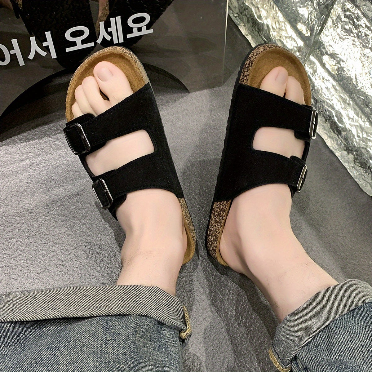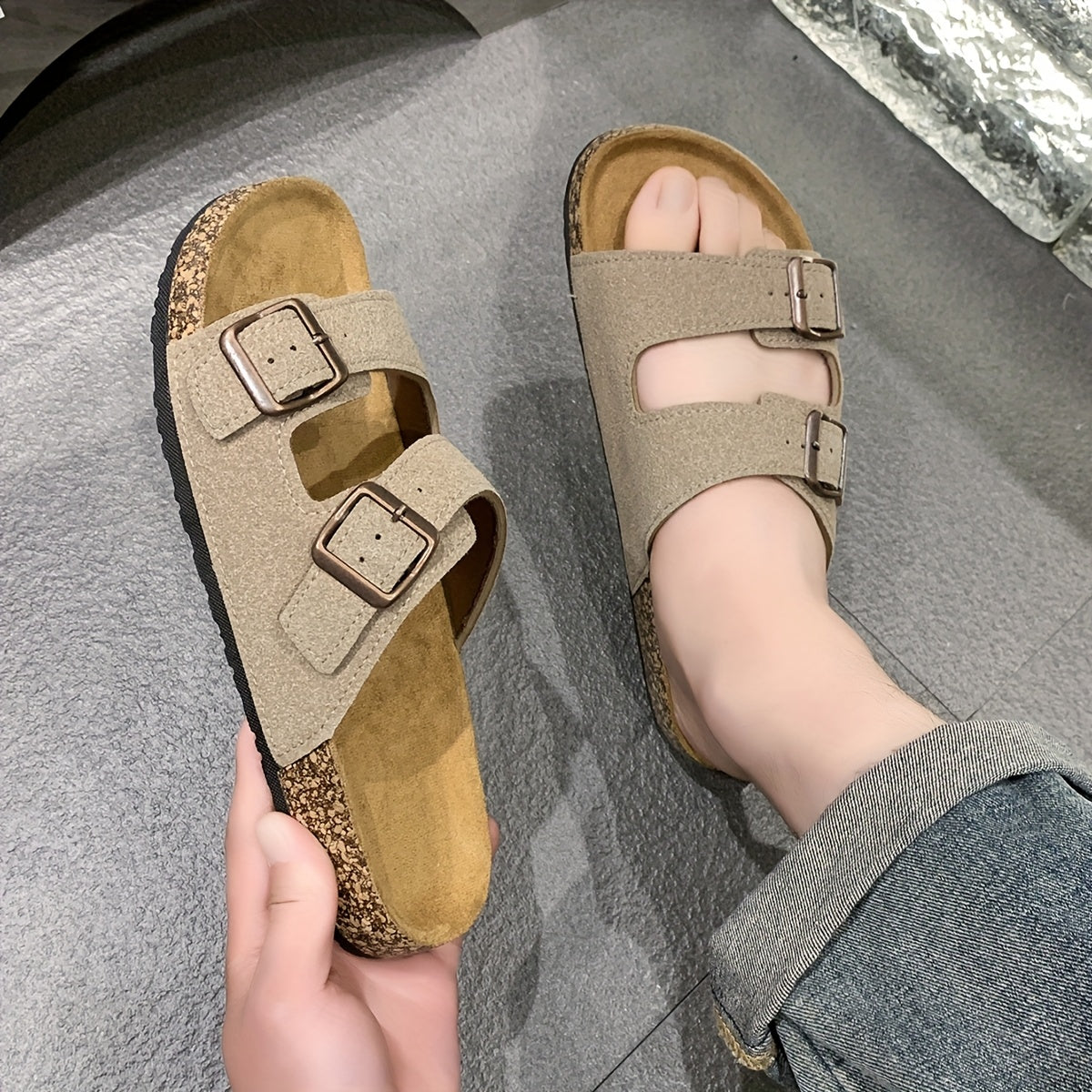 Miękkie retro klapki z podwójną klamrą zapewniają wygodę na każdy dzień.